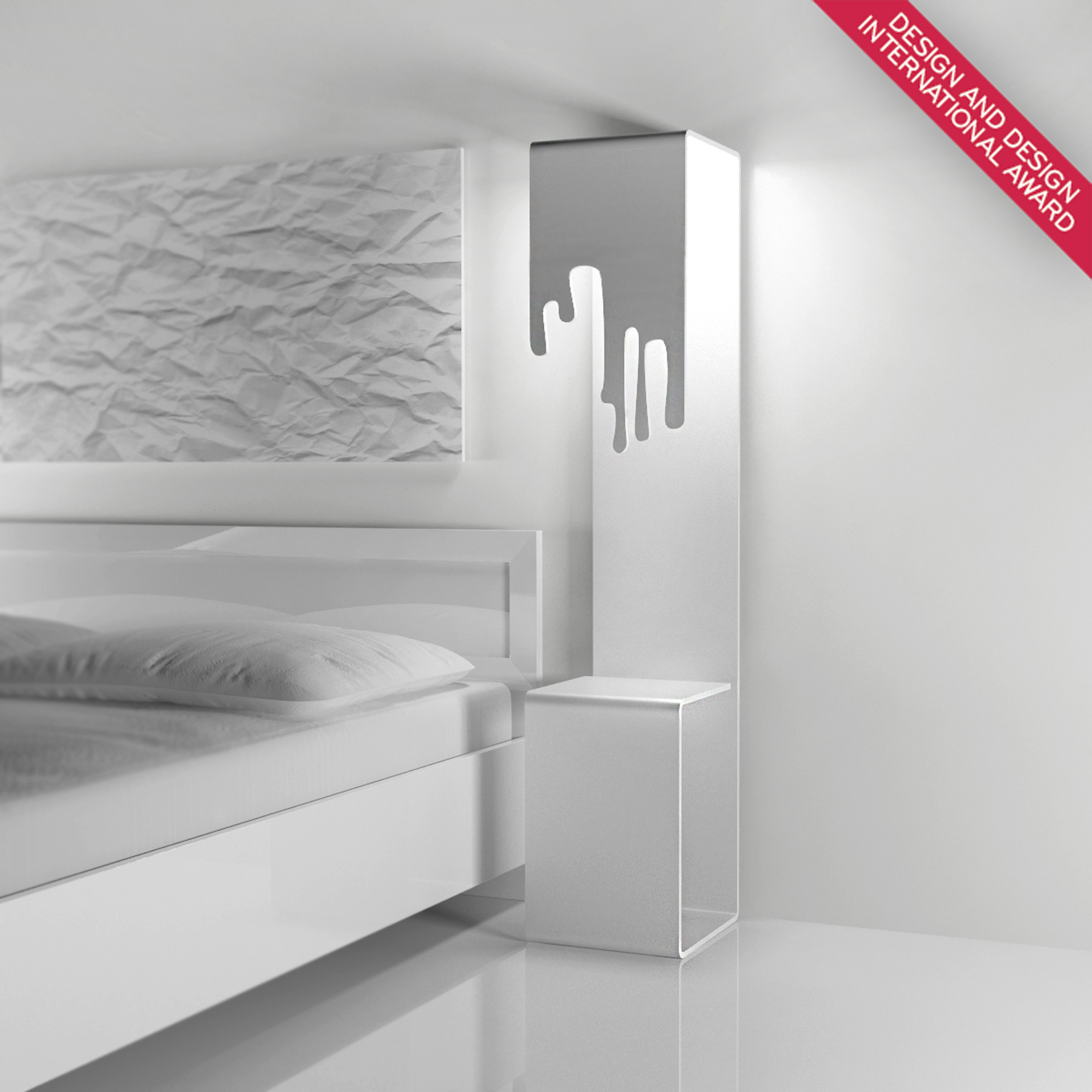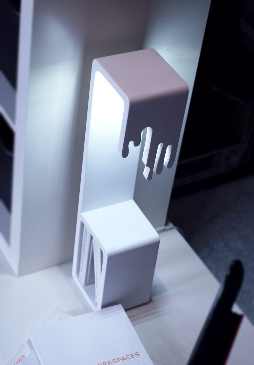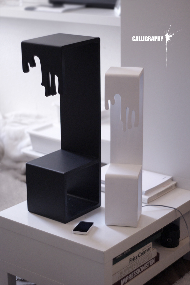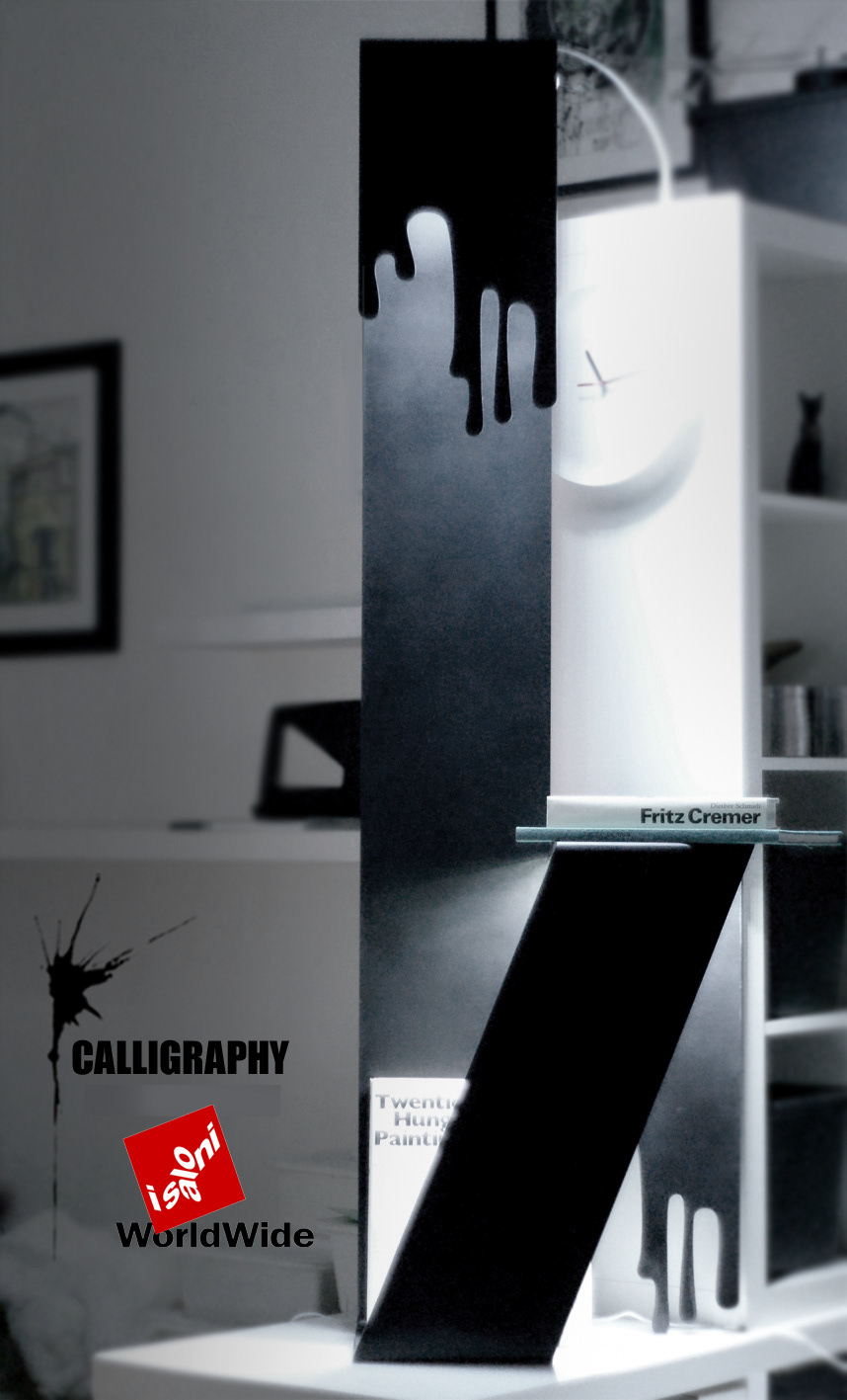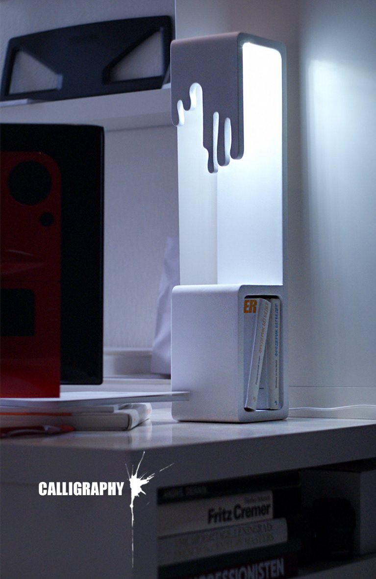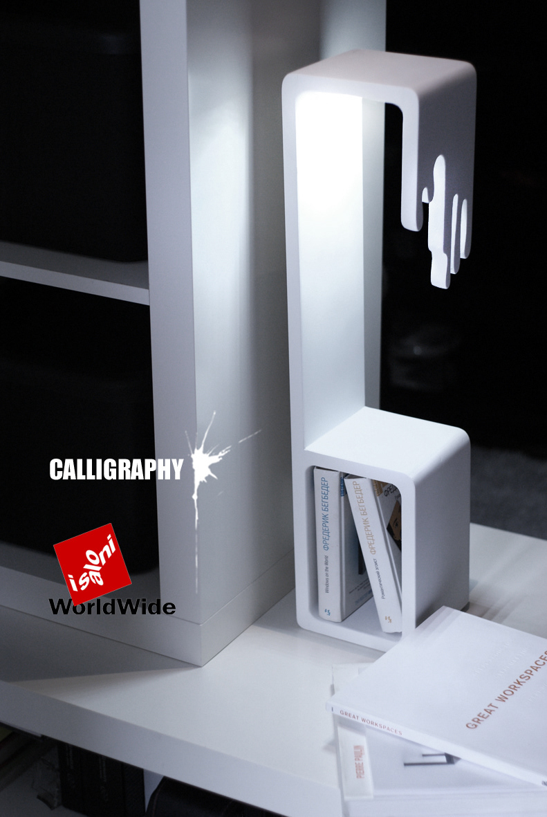 The ‘Calligraphy’ project is a hybrid object, combining a lamp, organizer (for magazines) and a console. It may be used as bedside table/chest of drawers, etc.